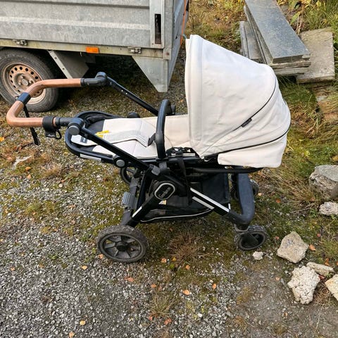Vognen har stor kalesje, integrert myggnetting, fempunktssele i sittedelen og romslig fotpose/trekk som dekker barnets ben. Understellet har fire store hjul og varekurv under setet. Håndtaket er polstret og justerbart i høyden, men har tydelige tegn på bruk(se bilde). Brukt som vogn i barnehagen siste året. Vognpose følger ikke med, men kan selges for 500 kr.