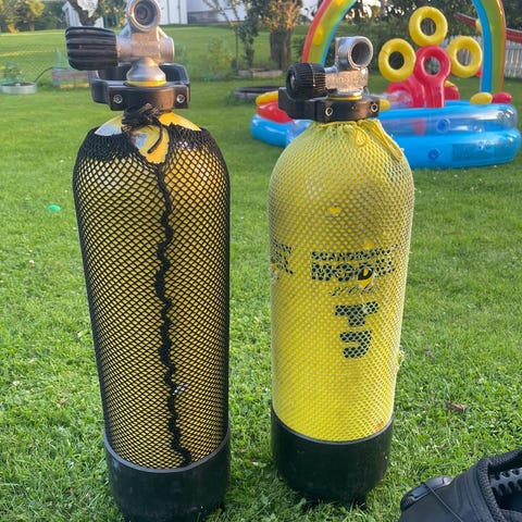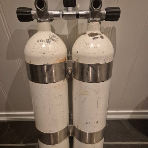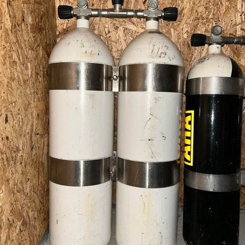 Har 2x dobbelsett liggende 300bar 6 liter. Ukjent tilstand. 4000kr samlet. sist trykkprøvd 2016 0g 2018 mener eg på