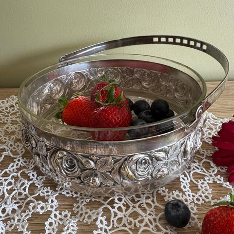 Søkeord: antikk vintage jugend jugendstil artdeco serveringskurv konfektkurv fruktkurv sølvplett nysølv epns bryllupsgave 1920 bordpynt dekor rosemotiv metall skandinavisk retro eldre interiør klassisk nostalgisk gave servering kjøkken pynt samleobjekt dekorativ tidlig1900 jugenddekor artdecouttrykk serveringsfat sølvplettfat vintagekurv borddekor tradisjon sølv patina