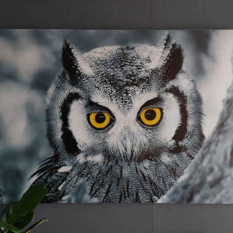Kraftfullt og flott motiv av løve på lerret i 7 deler. Målene er tatt i opphengt posisjon. Bredde: 220 cm, høyde: 150 cm.