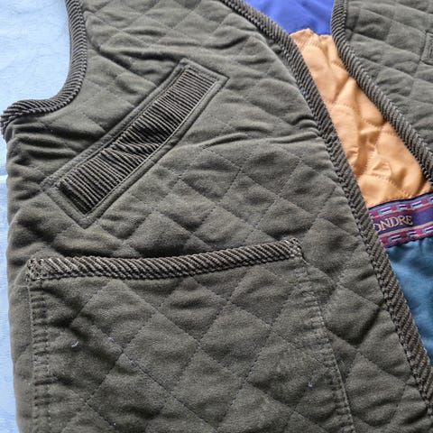 Greenwood vest i størrelse M. Vest i grønn, grovstrikket ullkvalitet med rund hals og hel knappestolpe med tindknappet med dekor. To frontlommer og brodert motiv på brystet. Fôret innside med trykket Greenwood-logo. Passer som ytterplagg eller mellomlag i kjøligere vær.