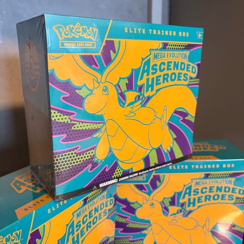 Pokémon Mega Evolution Ascended Heroes Elite Trainer Box (ETB). Pris er per ETB.