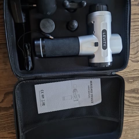Levity armblaster treningsutstyr i svart. Utformet for bruk rundt nakke og over skuldre for å støtte og stabilisere armene under styrketrening, typisk ved bicepscurl og lignende øvelser. Justerbare stropper gjør at den kan tilpasses ulike brukere. Egnet til innendørs styrketrening på treningssenter eller hjemme.