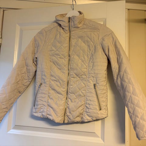 Jakke, beige, merke Amisu, str. 36. Ikke veldig varm, så mer for bruk til vår/høst.