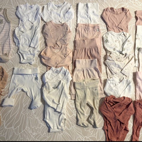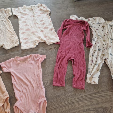 Hele og fine, kun den ene bodyen fra Lindex som har svake flekker på baksiden som vises på bilder.