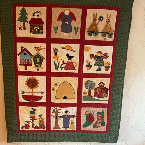 Håndlaget veggteppe barn med broderi og applikasjon flerfarget