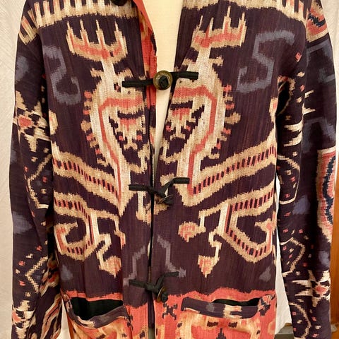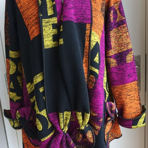 Genser/jakke primært i ull (se bilde med lapp for andre materialer). Størrelse S, men jeg ville sagt den er stor i størrelsen. Kan ta spesifikke mål ved forespørsel. Genser kan også hentes/leveres i Hamar.