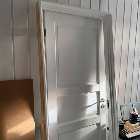 Pen dør , relativt nymalt. Med pent dørhåndtak.