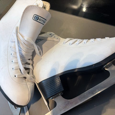 Piruett kunstskøyter i størrelse 40. Klassisk hvit modell med snøring og hæl. Skøytene har stålklinge med tagger foran, egnet for kunstløp og annen skøytebruk. Overdelen er i syntetisk materiale med polstret ankelparti for økt komfort. Innvendig fôr gir ekstra varme ved bruk på isen. Passer til bruk på isbaner, kunstis og naturis.