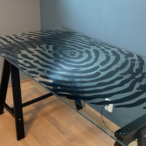 Praktisk skrivebord med glassplate