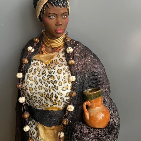Nigeriansk dekorativ skulptur i metall med figurmotiv