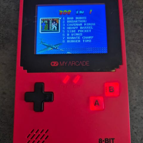 Gameboy lignende håndhold spillkonsoll med 500 spill innebygget mange super Mario bros spill. Kan kobles til tv tror man kan spille 2 player med kontrollen som er vist på bilde. Konsollen har lyd