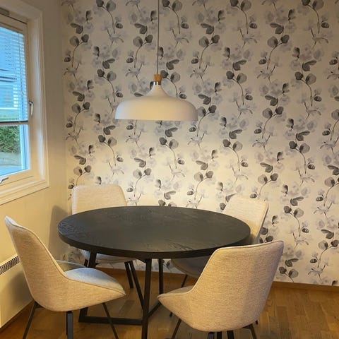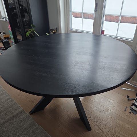 Spisebord med svartlakkert askefinert bordplate