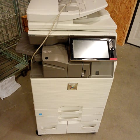 fargemultifunksjonsskriver. Dette er en profesjonell maskin perfekt for små og mellomstore bedrifter som trenger rask utskrift, skanning og kopiering i høy kvalitet.