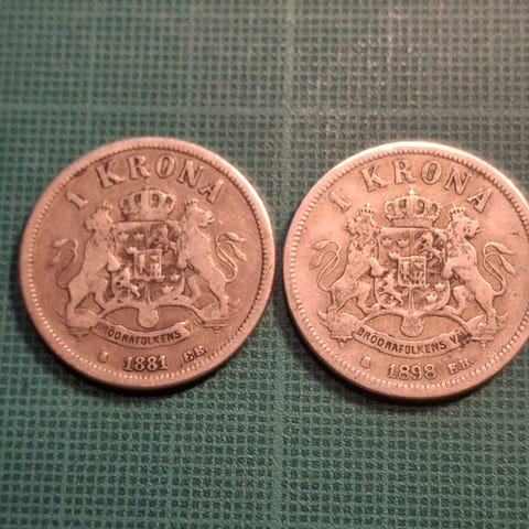 Selger en fin lot med 7 stk svenske 1 kroner i sølv fra Oscar II.