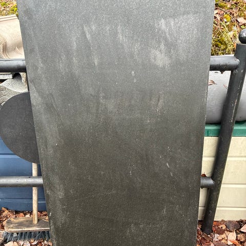 Noen riper etter å ha prøvd å få vekk stearin-søl. Vet ikke om disse ripene kan fikses, bør vel høre med stein-folk.