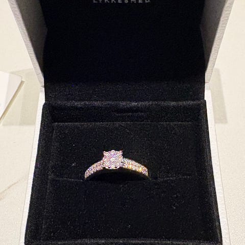 Nydelig ring i hvitt gull selges, mistet 3 diamanter på siden. Se bilde! Ny pris 14999kr