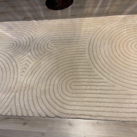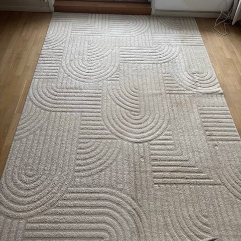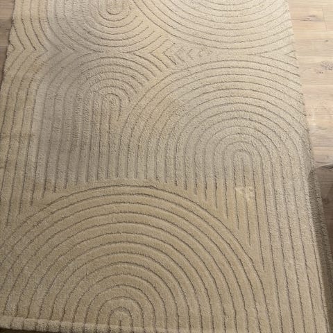 Godt brukt teppe fra kid. Nypris 2500kr. Teppet er litt misfarget etter bruk men dette kan nok bli vasket bort ganske så enkelt. Merk at d er mer merker etter sofaben se siste bilde.