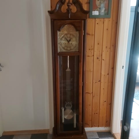Gulvklokke tre med pendel. Må hentes.