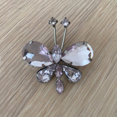 Sommerfugl brosje sølvbelagt med stener. Pen og i god stand men mangler en sten