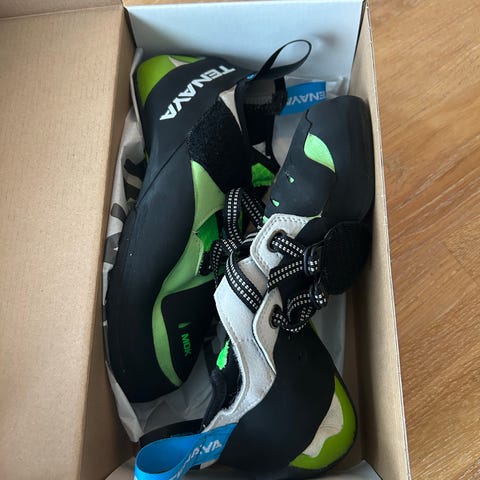 Selger helt nye klatresko, som dessverre ikke passet noen hos oss.