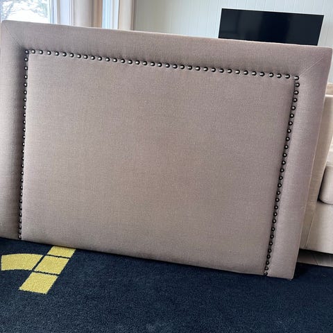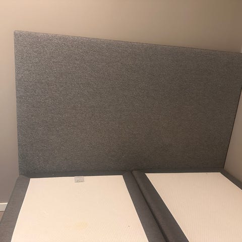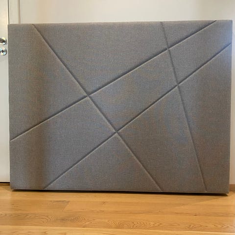 Grå Sengegavl fra Svane. Henges på vegg i ønsket høyde. 180 cm bredde.