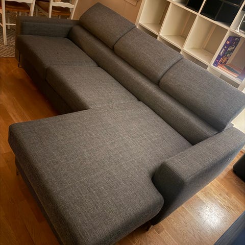 Kjøpt for 12 000kr i 2021, men lignende modell koster rundt 18 000kr i dag. Noen av ryggputene har mistet litt fasong, ellers pent brukt. Må hentes.