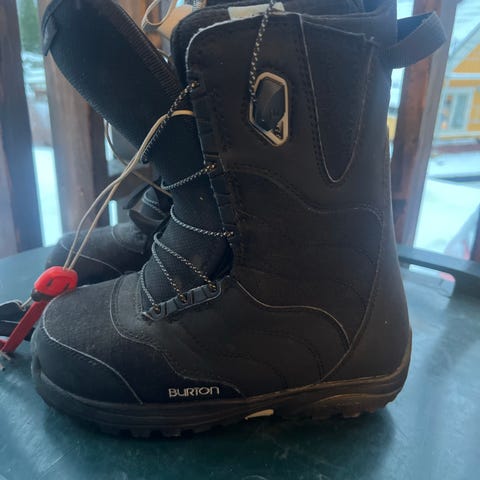 Burton Moto snowboardstøvler for herre i størrelse EU 43 (US 10, UK 9). Modellen har svart farge og snøresystem med Boa hurtigsnøring. Overdelen er i syntetisk materiale med forsterket tå- og hælparti. Sålen har grovt mønster for godt grep på snø og is. Støvlene har polstret innersko for komfort og støtte ved snowboardkjøring.