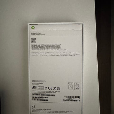 Uåpnet iPhone 17 Pro Max 256GB - Kosmisk Oransje, med støtsikker gjennomsiktig deksel og Kredittkort lommebokfinner