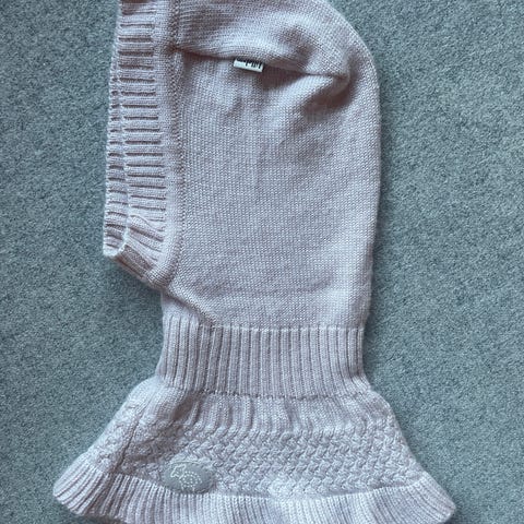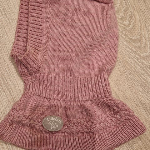 Lillelam balaclava for barn i størrelse 44–46. Hodeplagget er laget i 100 % merinoull og en nydelig rosa farge, lyng. Unisex-modell som dekker hode, hals og deler av brystet for jevn varme. Strikket struktur med ribbekanter for god passform. Egnet som varm lue under yttertøy på kjølige dager.