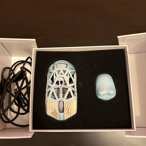 Musen er bygget i magnesium, noe som gjør den utrolig lett, og med 8K Hz polling rate og Omron Optical-svitsjer får du absolutt topp ytelse. Den ble kjøpt ny i september 2024, og alt originalt tilbehør medfølger.