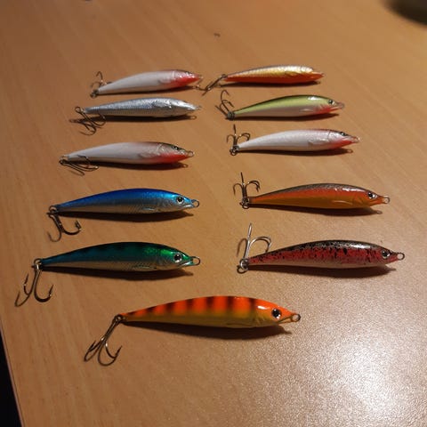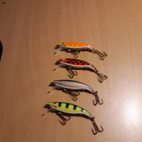 7 st 10 cm. 2 st 12 cm. Alle med stor ske for dypere gange. Bra til all rovfisk i ferskvann men kan godt brukes i salt vann. Nye. Kan sendes.
