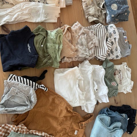 Selger en fin pakke i str 68, god stand, noen få som er ull.