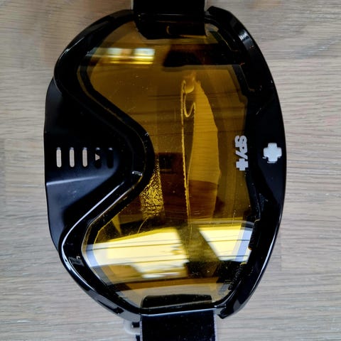 SPY skibriller med oransje linse og blå/svart ramme og stropp. Brillene har polstret skum rundt rammen for økt komfort mot ansiktet.