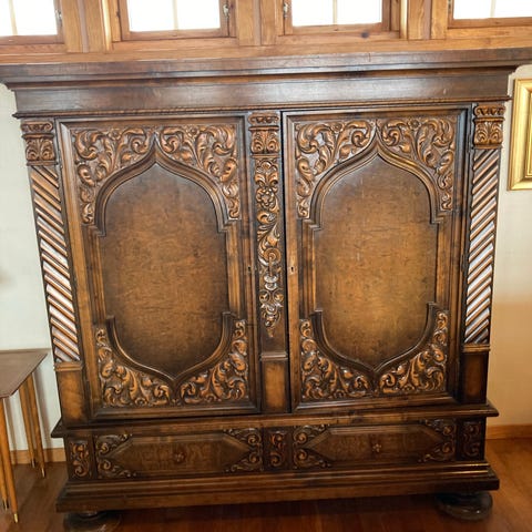 Skjenk i tre med utskårne detaljer fra 1920-1930 tallet
