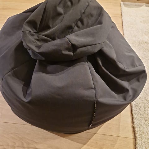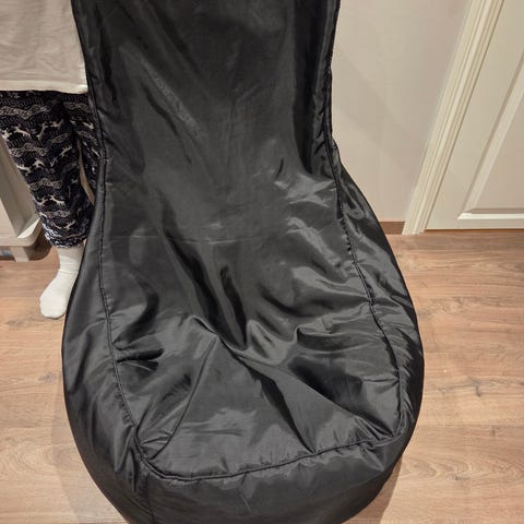 Nesten ikke brukt sack it stol til salgs. Svart med pene brune strå detaljer som er håndsydd i fint mønster på kantene. På bakside er det et håndtak i lignende så det gjør det lett å flytte den og er en pen detalj. Kan være litt resterende hunde hår på den så bør ikke vær allergisk. Opprinnelig pris 4000. Ingen tydelig slitasje. Det er med innerpose fylt med kuler som beveger seg fritt. Fyllet er integrert i konstruksjonen slik at stolen holder formen bedre og gir stabil støtte for rygg og kropp. Selges uten puff.