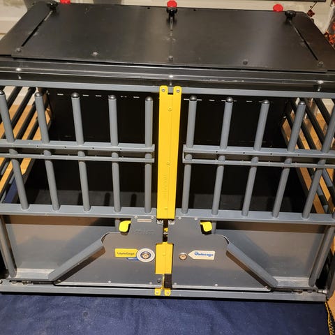 Kollisjonssikret splintrefritt hundebur med deformasjonssone.