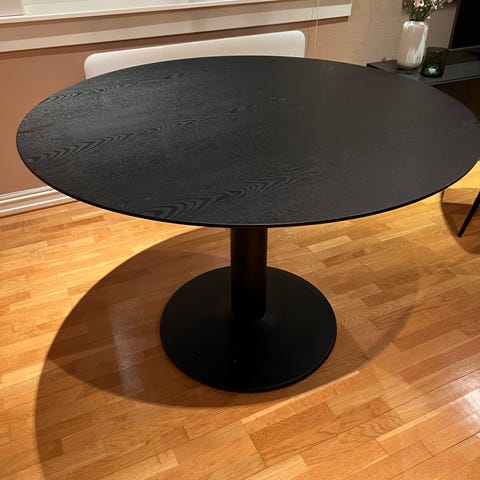 Jysk ringsted rundt spisebord i svart askefiner. Ca ett år gammelt, noen bruksmerker finnes hvis man ser etter men er i god stand