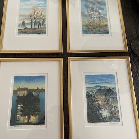 Alle fire bildene selges med originale rammer, noe som gjør dette til en sjelden mulighet til å kjøpe en hel, sammenhengende samling. Motivene gir innblikk i eldre bymiljøer i Oslo og passer både for samlere og for dem som ønsker tidløs veggkunst med lokalhistorisk forankring.