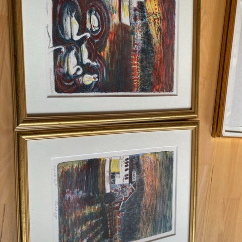 Jeg selger fire grafiske trykk av Kristian Kalmar, alle med klassiske Oslo-motiver: