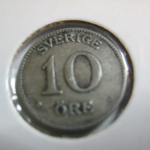 10 öre 1918 Sverige sølvmynt, meget pen med god myntglans