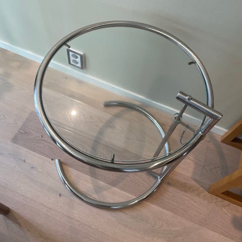 Selger en stilren og moderne bartralle / barvogn i glass og krom. Dette er et elegant rullebord / trillebord med hjul som gjør det enkelt å flytte rundt ved behov.