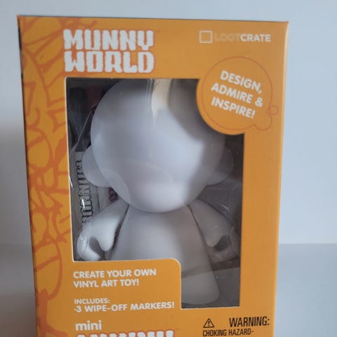 Hvit Kidrobot munny figur . Ca 14 x 5 cm .