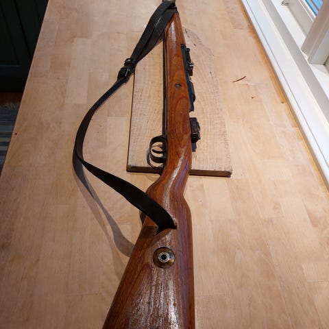 Med jaktstokk og dempegummi bak. Denne «kanonen» fungerer bra enda.