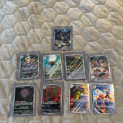 Alt selges samlet og selges som de er. Scizor kortet er litt skadet.