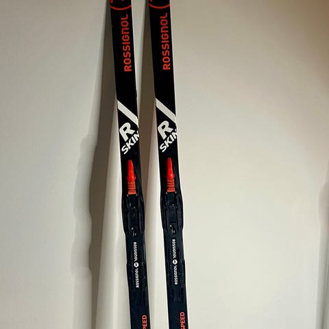 Rossignol R-Skin langrennski til barn i 150 cm. Skiene er pent brukt, men har naturlige bruksmerker. Skiene står med lagringsvoks.