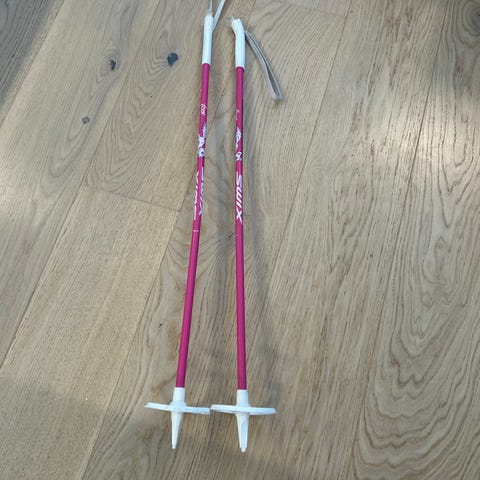 Swix Frosty skistaver for barn. Stavene har blå og hvit farge med håndtak i plast og enkle håndstropper. Utstyrt med runde trinser og spisser tilpasset bruk på snø. 80cm