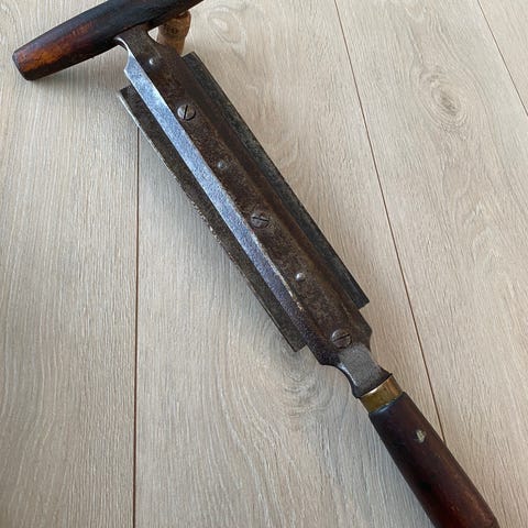 Gammei båndkniv/ drakniv brukt til tømmerhogst i Telemark.