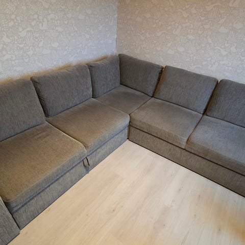 Sovesofa kan gjøres om til dobbelseng. Ikke synlig slitasje.