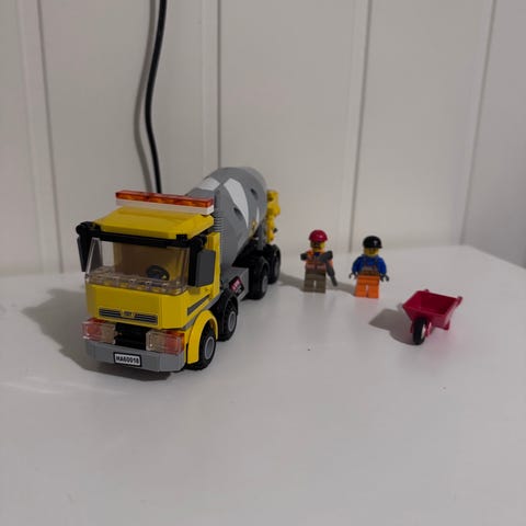 LEGO City lastebil. Settet består av en oransje og grå lastebil med tippelast og avtakbar grønn container. Lastebilen har førerhus med plass til minifigur og bevegelige hjul. Passer som tillegg til andre LEGO City-sett og til lek med byggeplass- og transporttema.